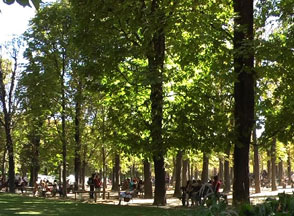 Connaissant le lieu, étant donné la splendeur lumineuse de l'instant, je savais que j'allais me poster loin du kiosque, au milieu des arbres et des promeneurs. La suite, je le découvrirais au fur et à mesure que le plan sera enregistré, que mon corps se déplacera, les yeux rivés à l'écran. Je découvrirai en même temps que la caméra.